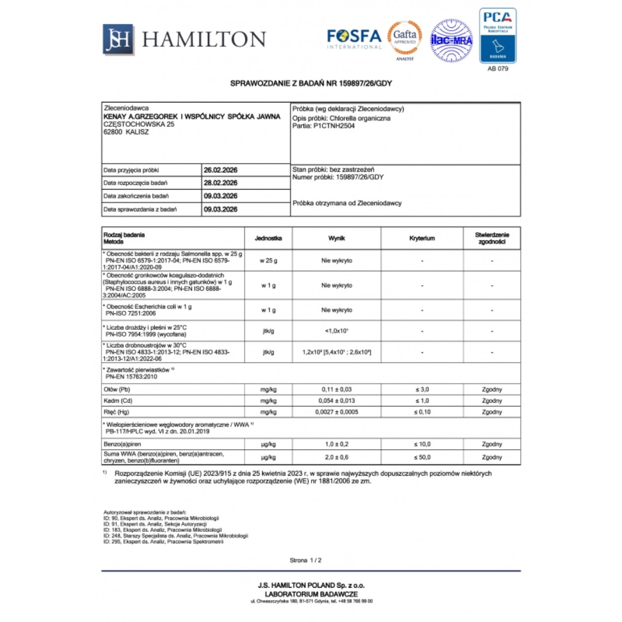 W przypadku Kenay Chlorella Organiczna producent podkreśla zastosowanie rozbitych ścian komórkowych, co ma wspierać lepsze trawienie i przyswajanie. Dodatkowo produkt wyróżnia się wysoką zawartością chlorofilu oraz ekologicznym pochodzeniem surowca.